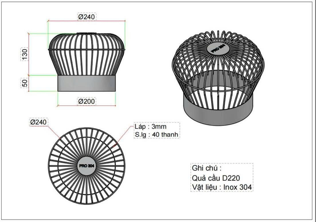 Bản vẽ cầu chắn rác inox 304 phi 220